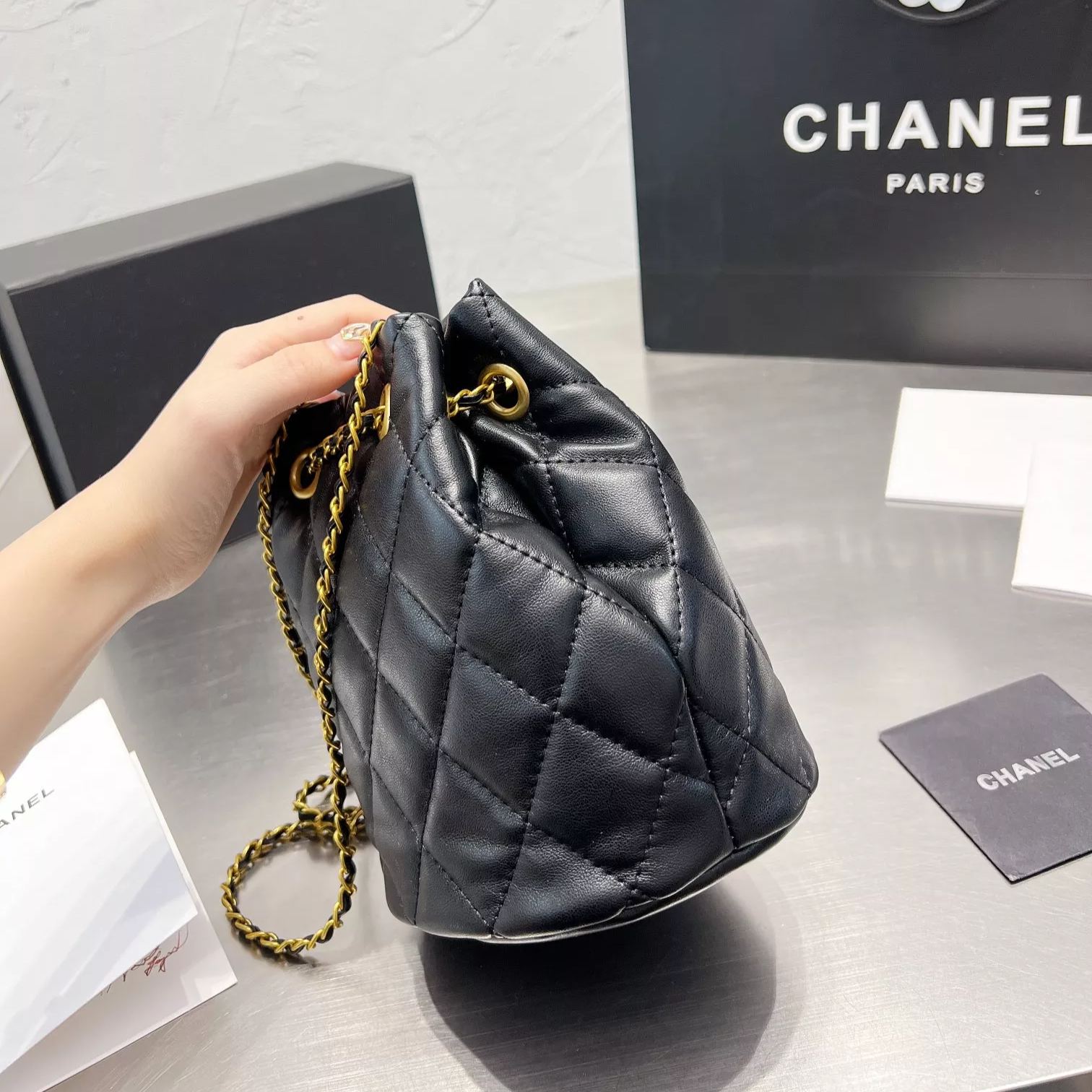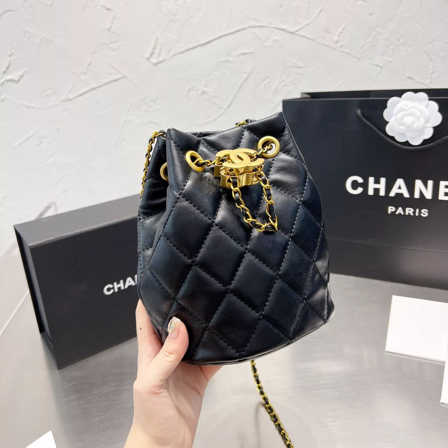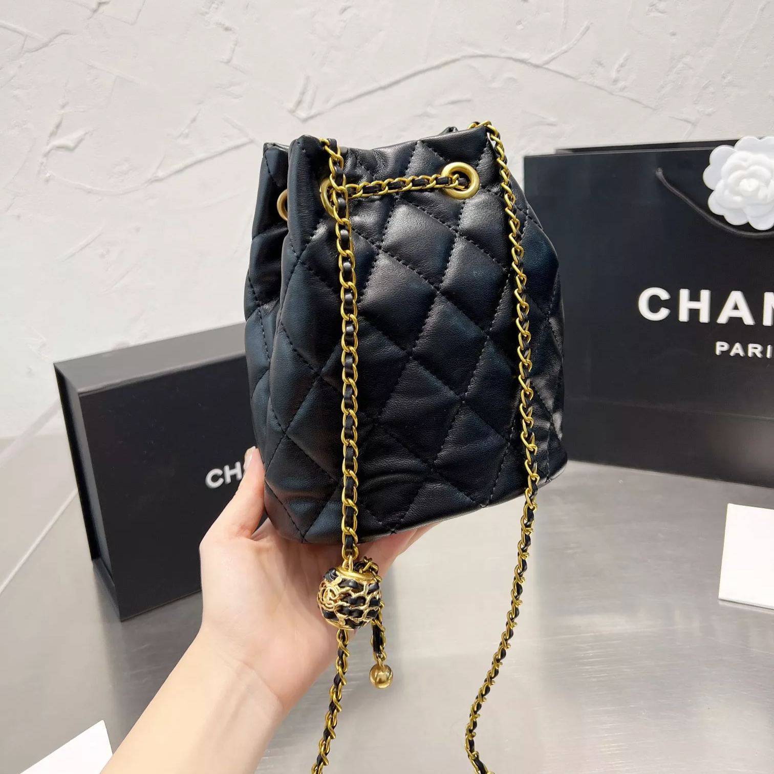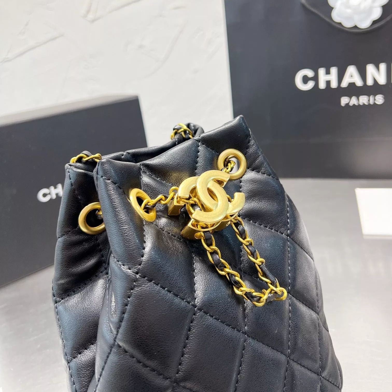 Diamond Drawstring Bucket Bag