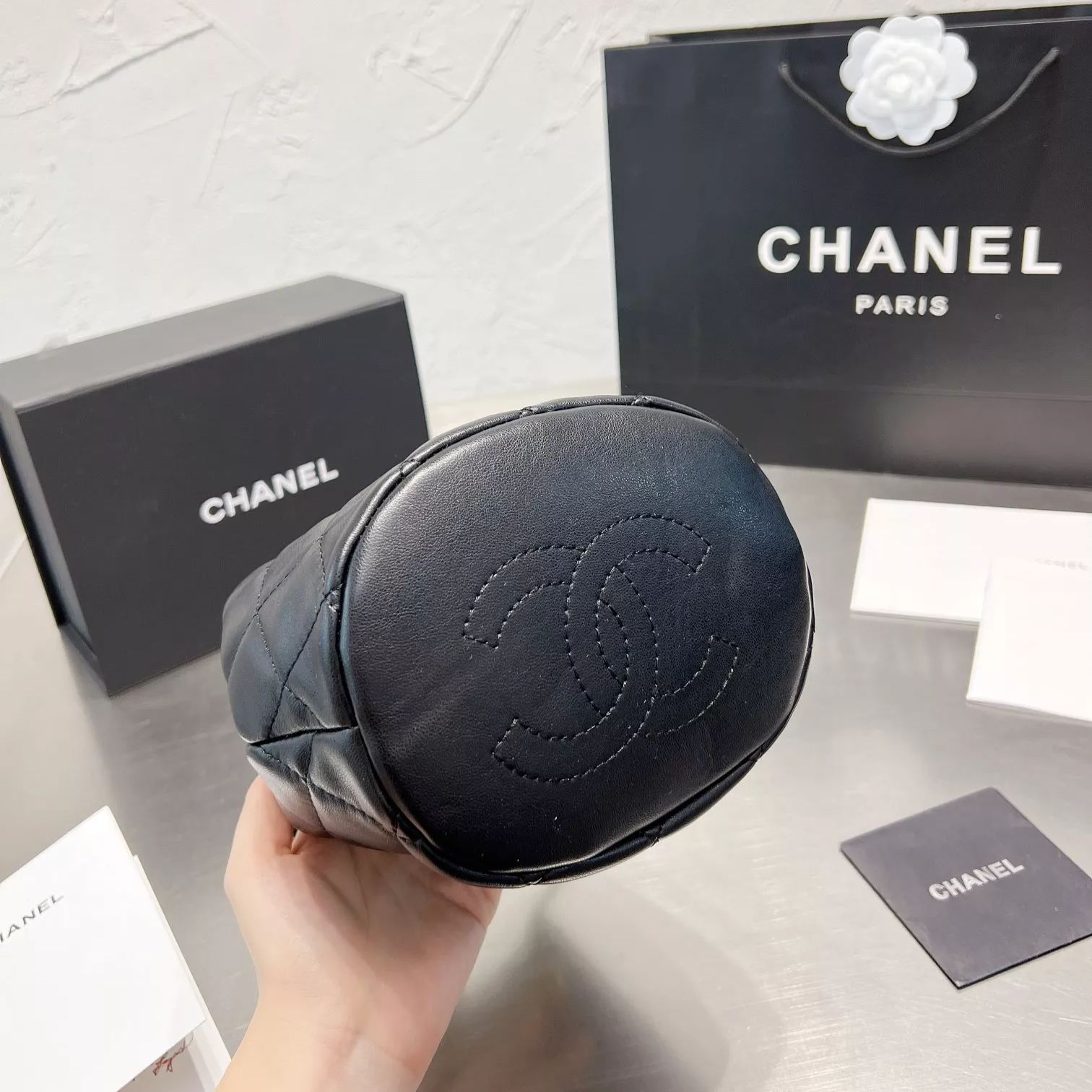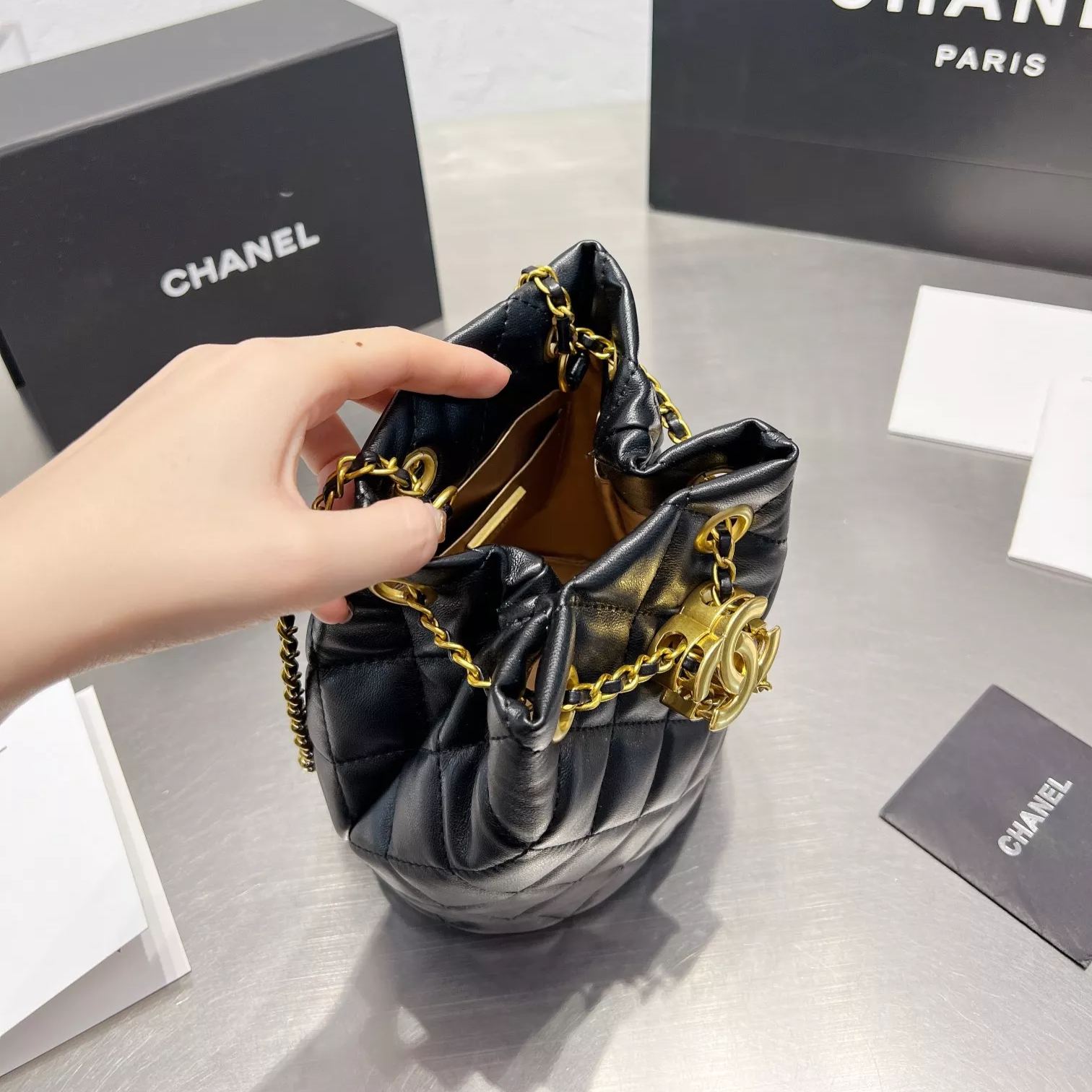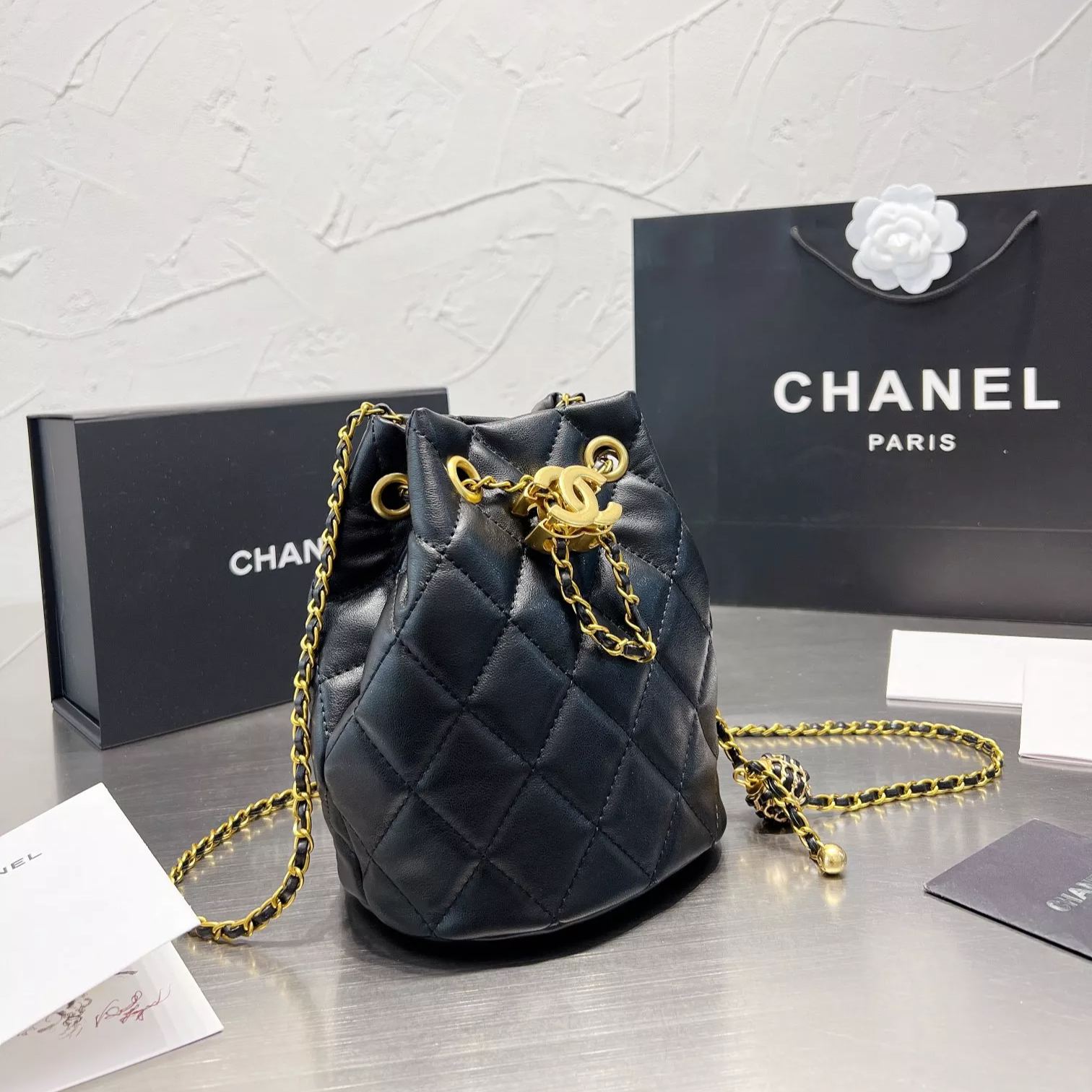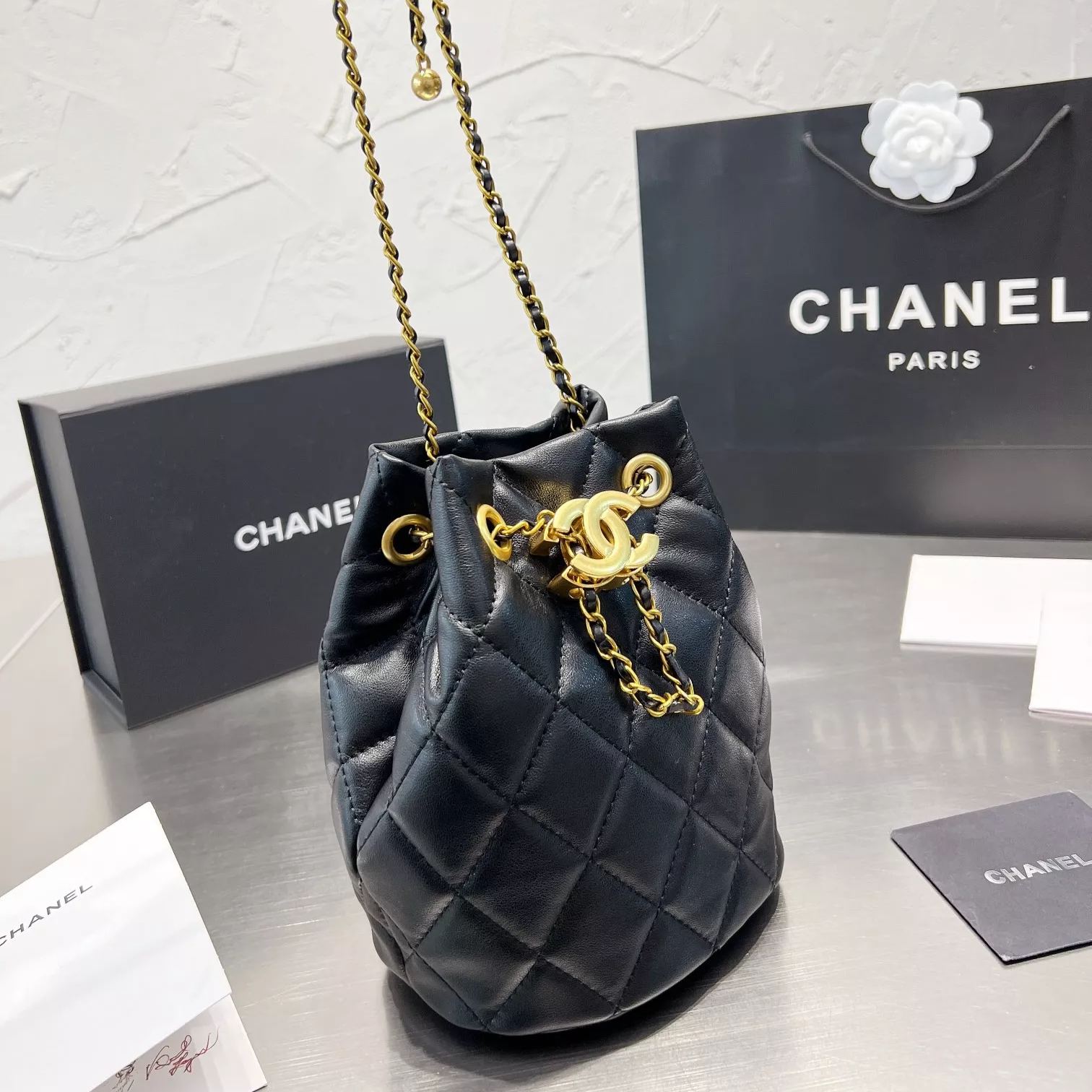 Diamond Drawstring Bucket Bag