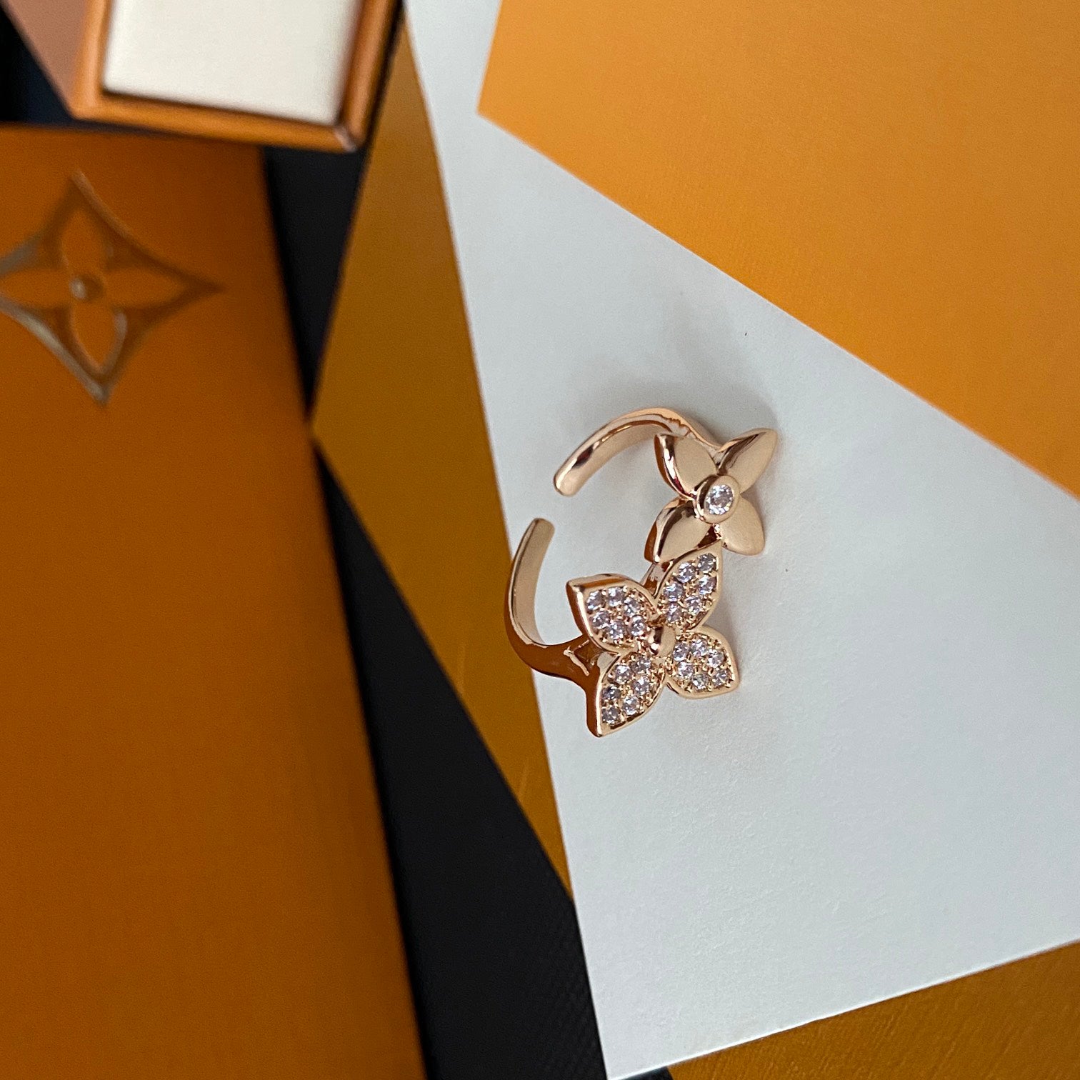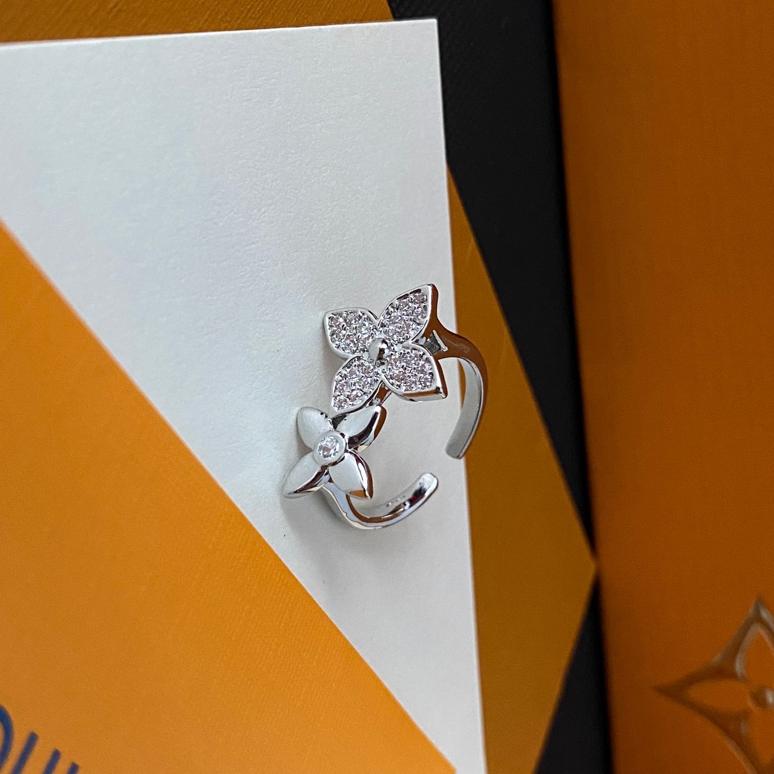 Diamond Floral Open Ring