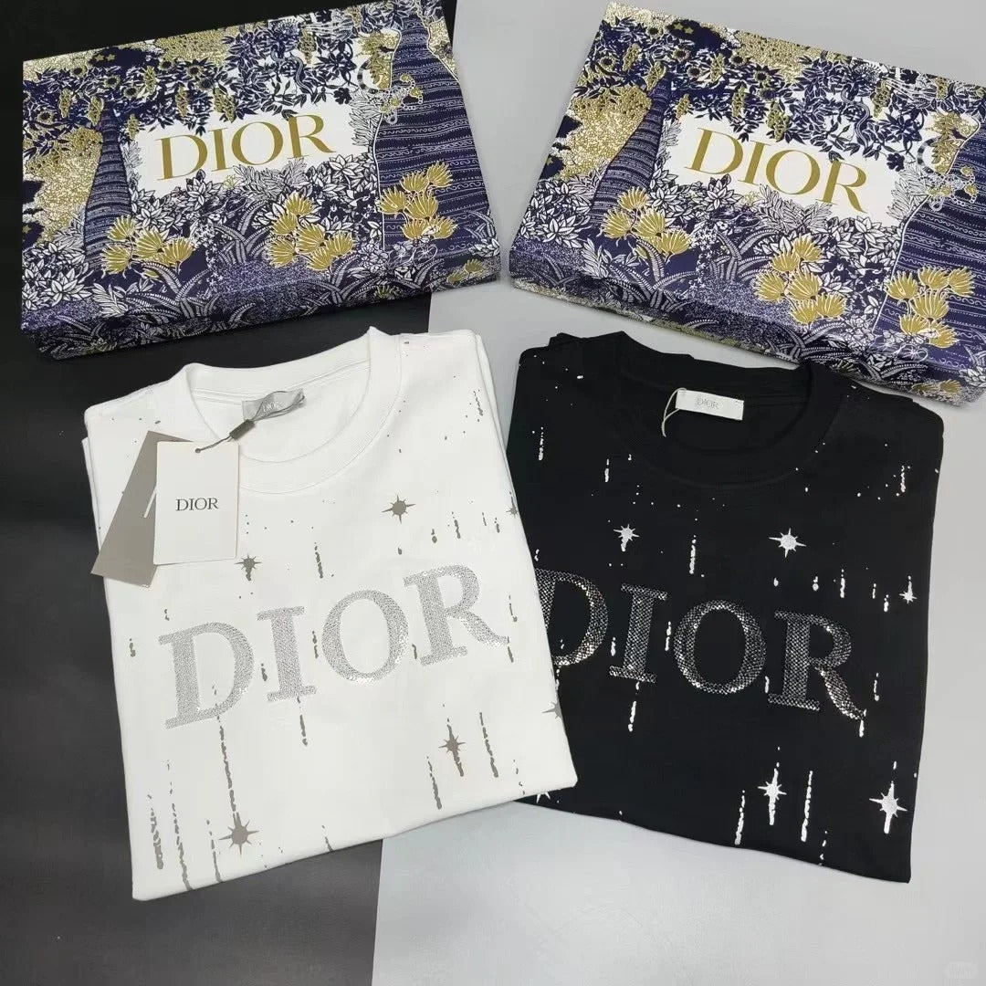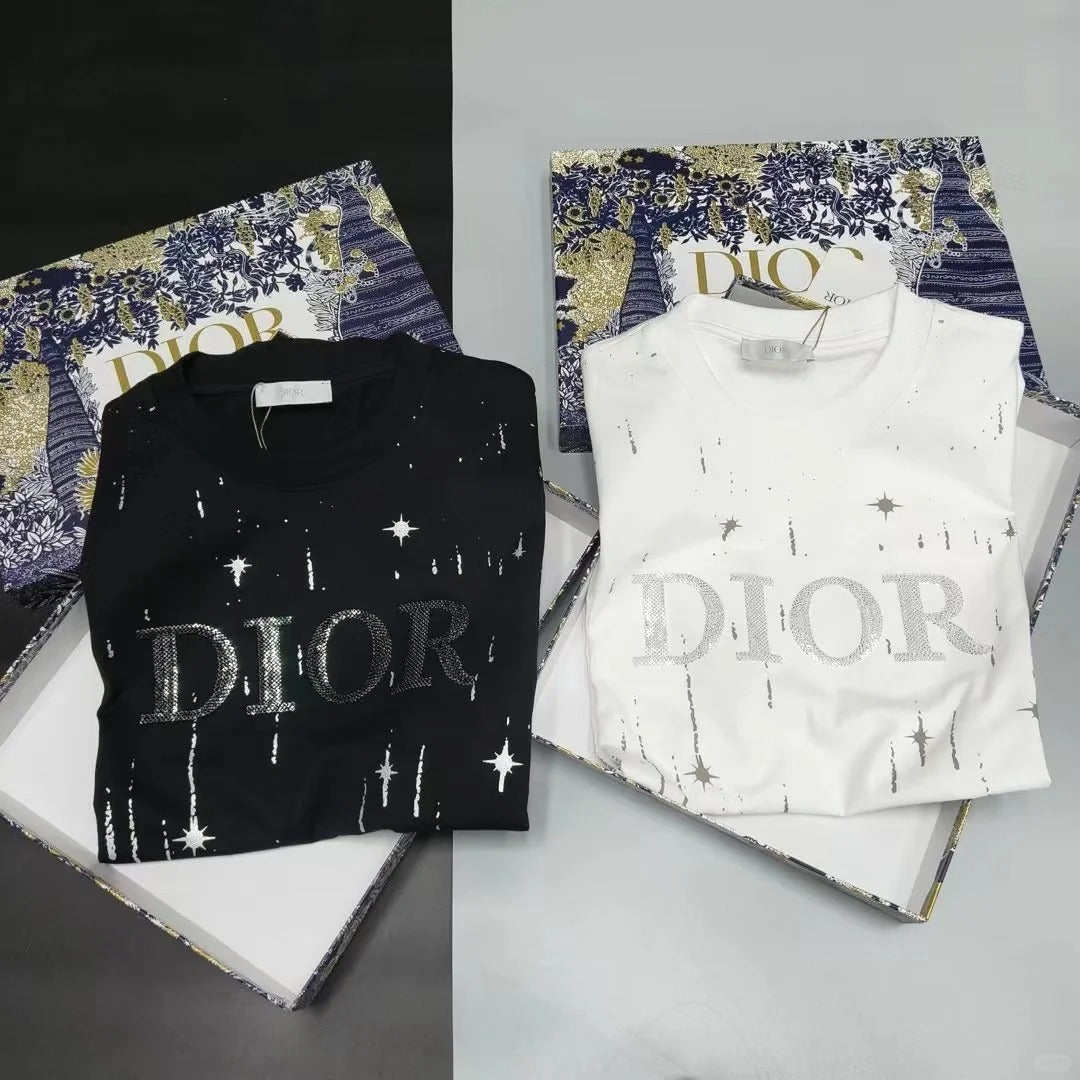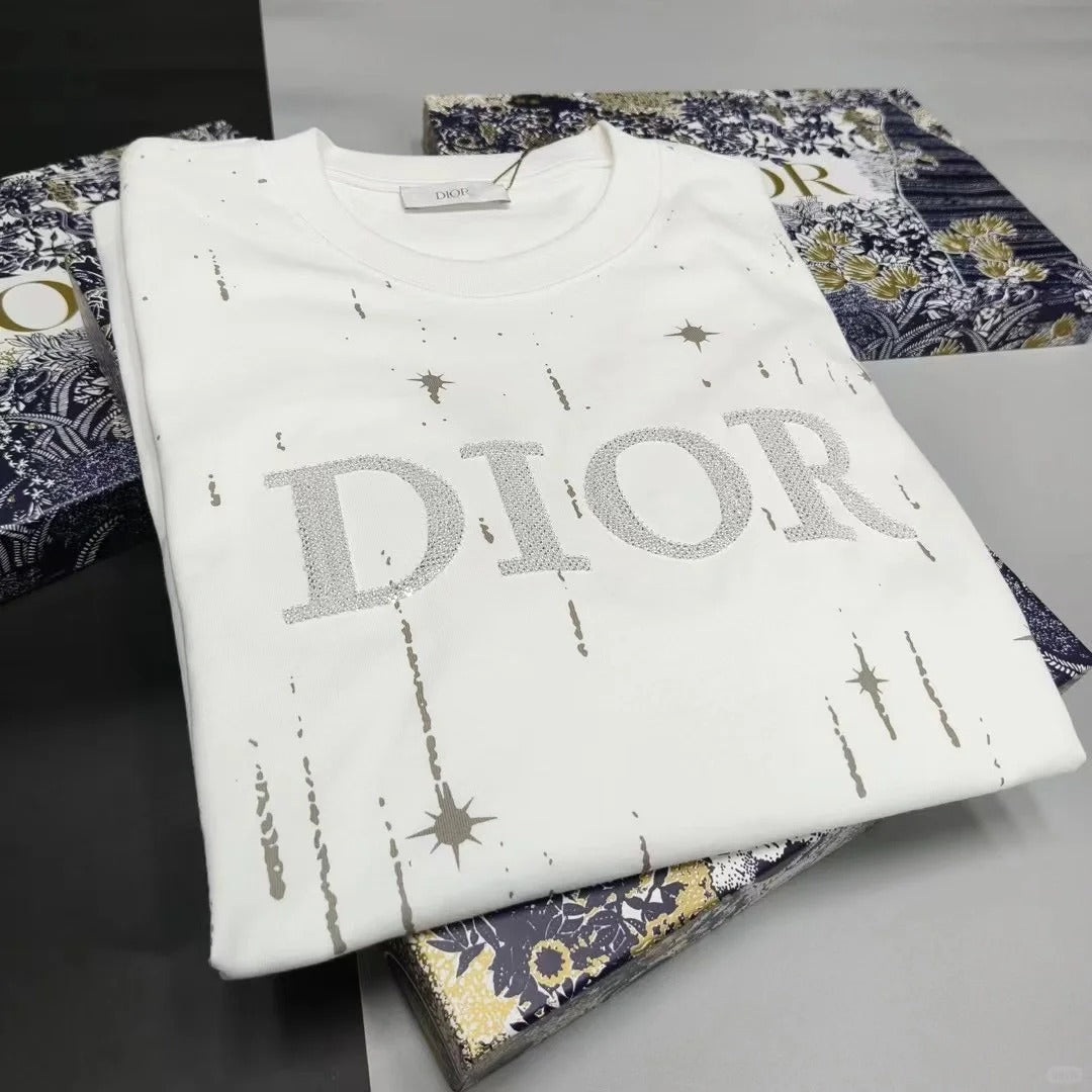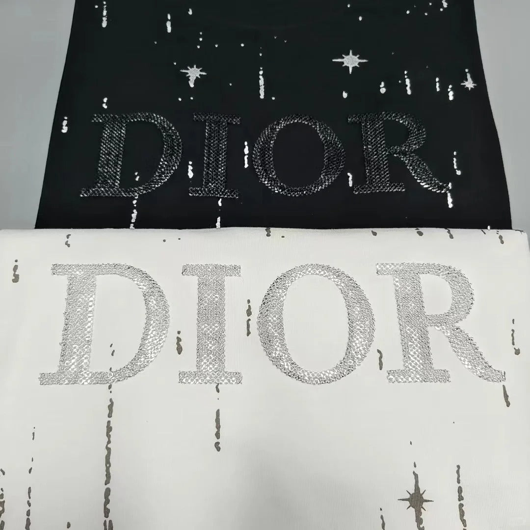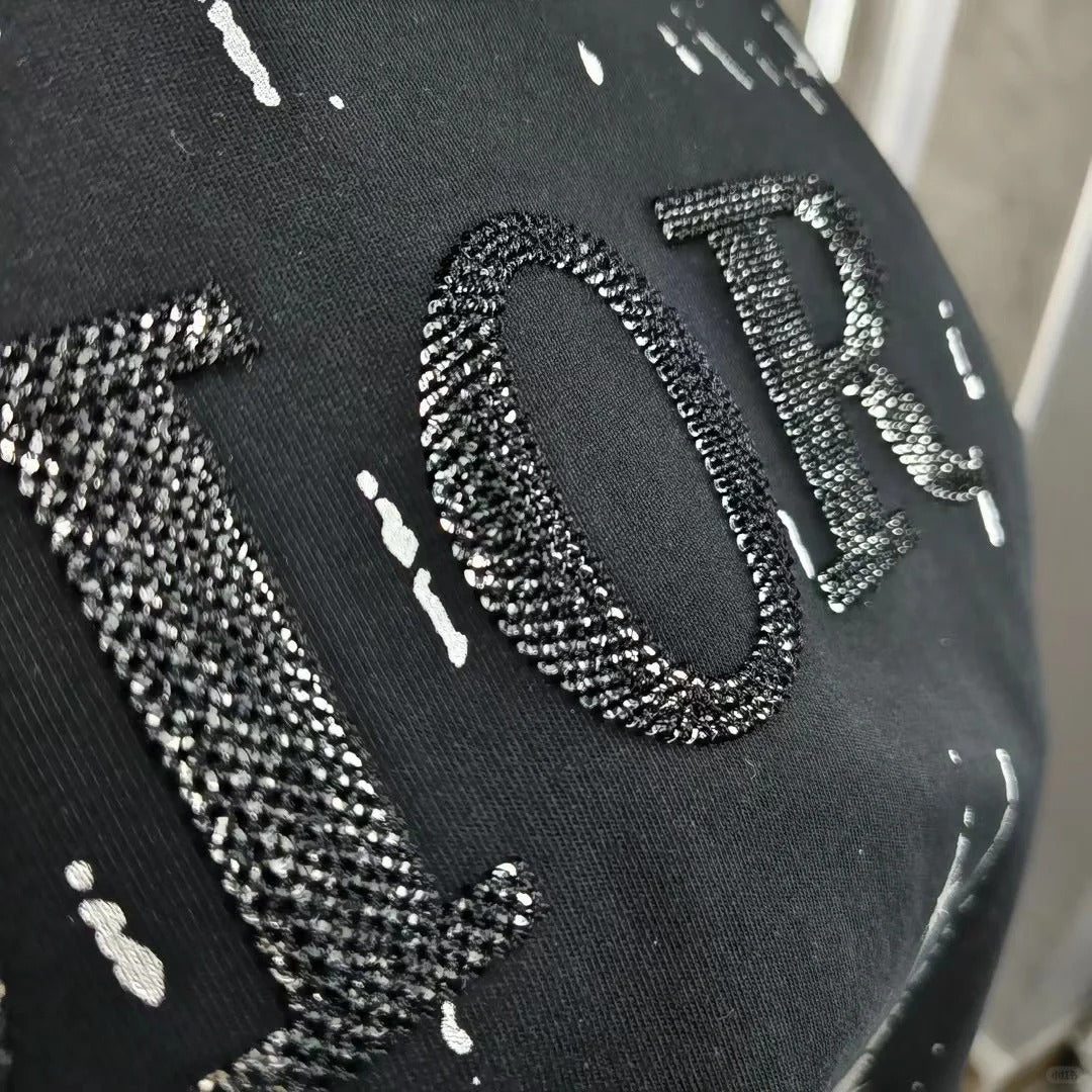 Embroidered cotton loose-fitting round neck short-sleeved T-shirt