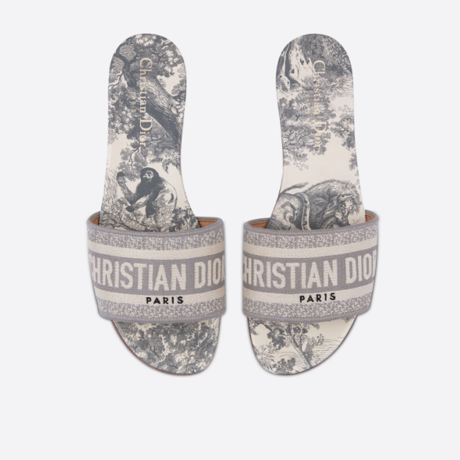 - The embroidery slide has a timeless and emblematic silhouette. The slide's upper features a black embroidered brand signature and instantly stands out. The streamlined shoe slips on easily and offers effortless style.