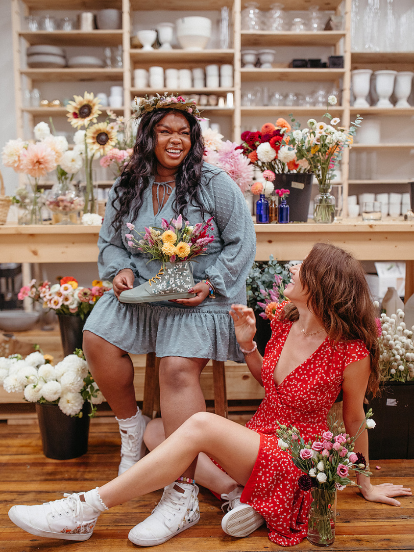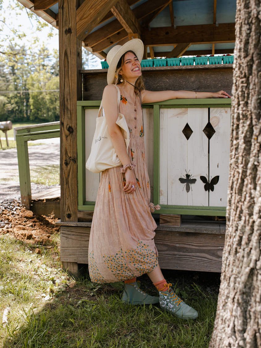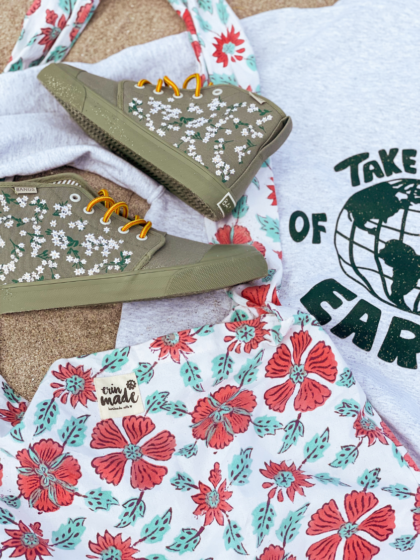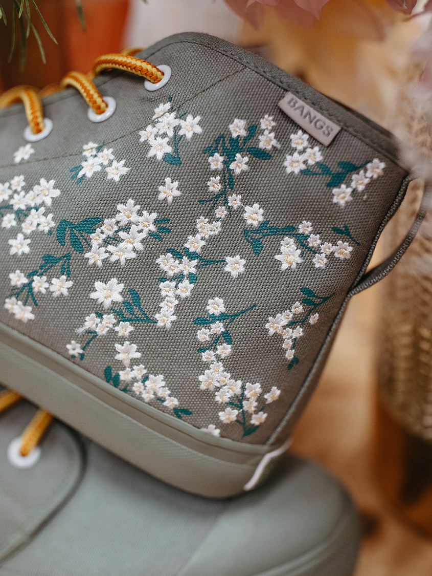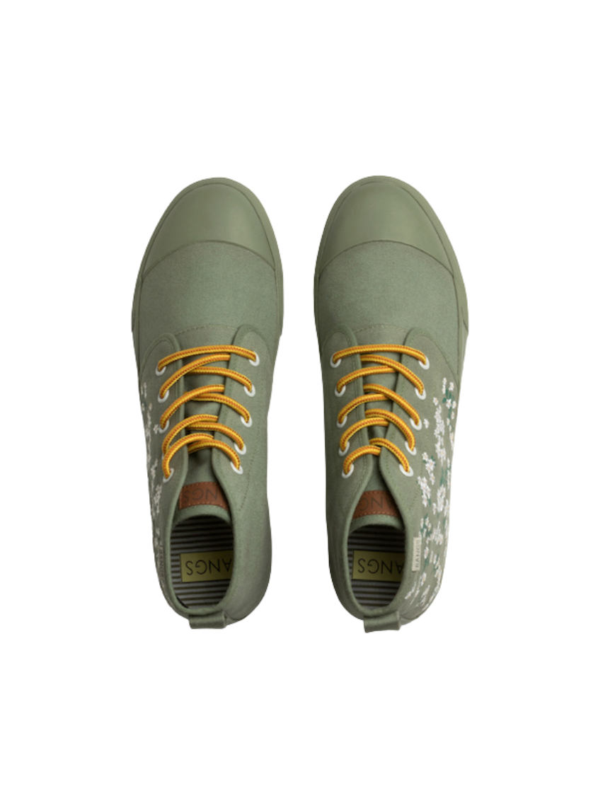 Floral Field High Tops feature embroidered white flowers on screen-printed stems that will add a whimsical flare to any outfit. The canvas is oursage a light green color. The laces are our Amazon Rope Laces. (Amazon because they reminded us of snakes from the rainforest...)