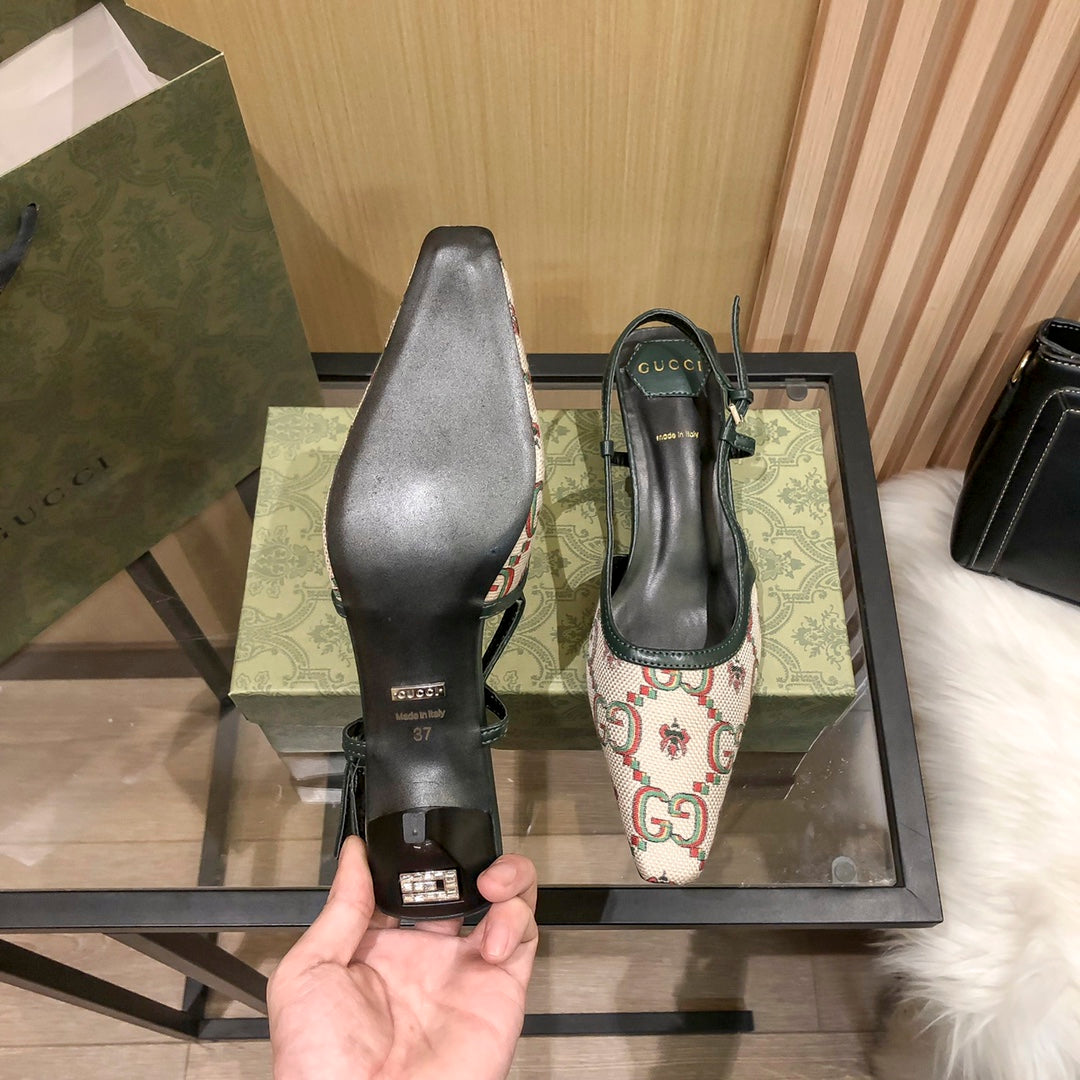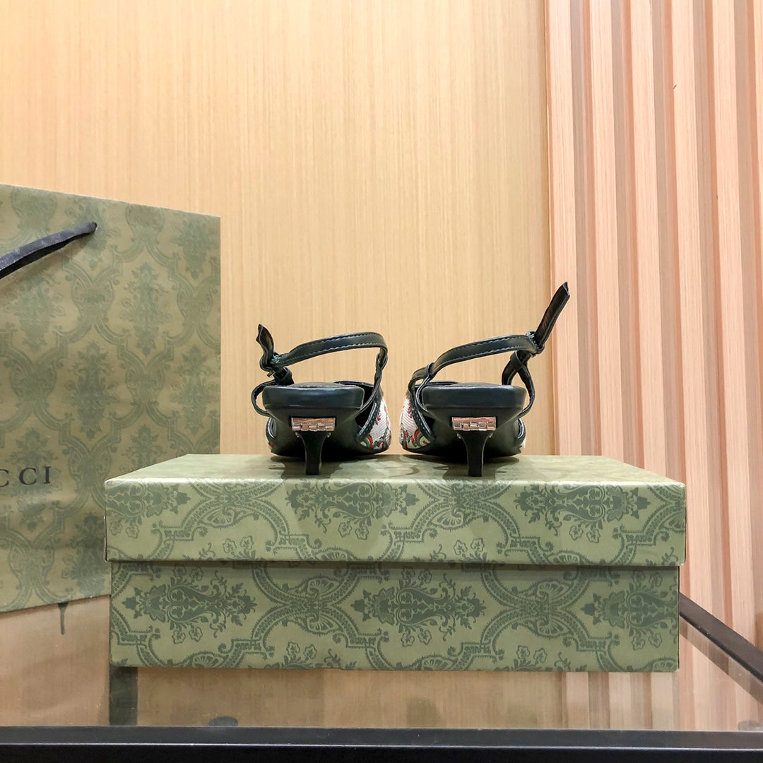 Floral Jacquard Slingback Low Heel Sandals