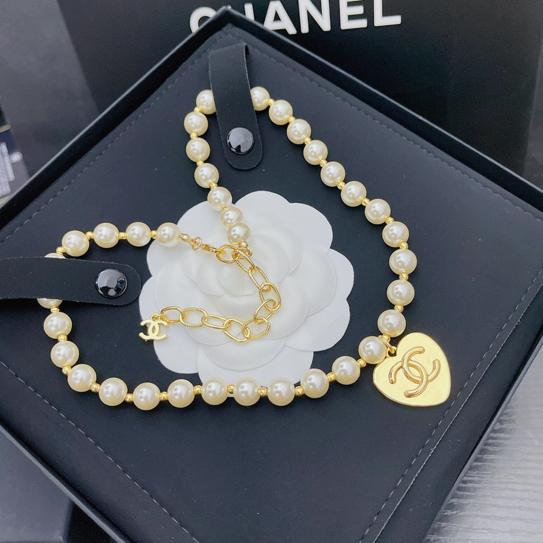Heart Pendant Pearl Necklace