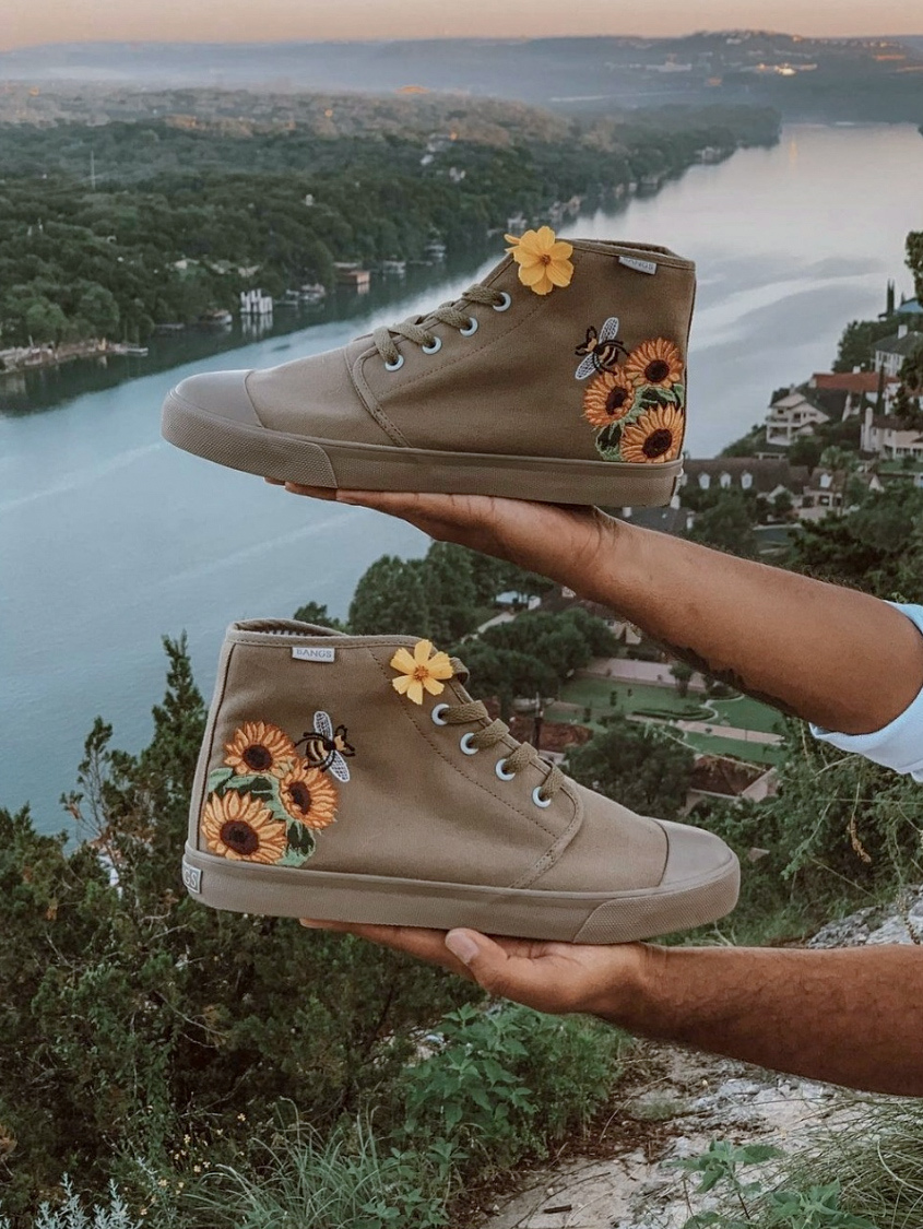Commonly searched keywords for these kicks:green high top summer spring forest green old pine sunflower flowers floral summer spring embroidered bee