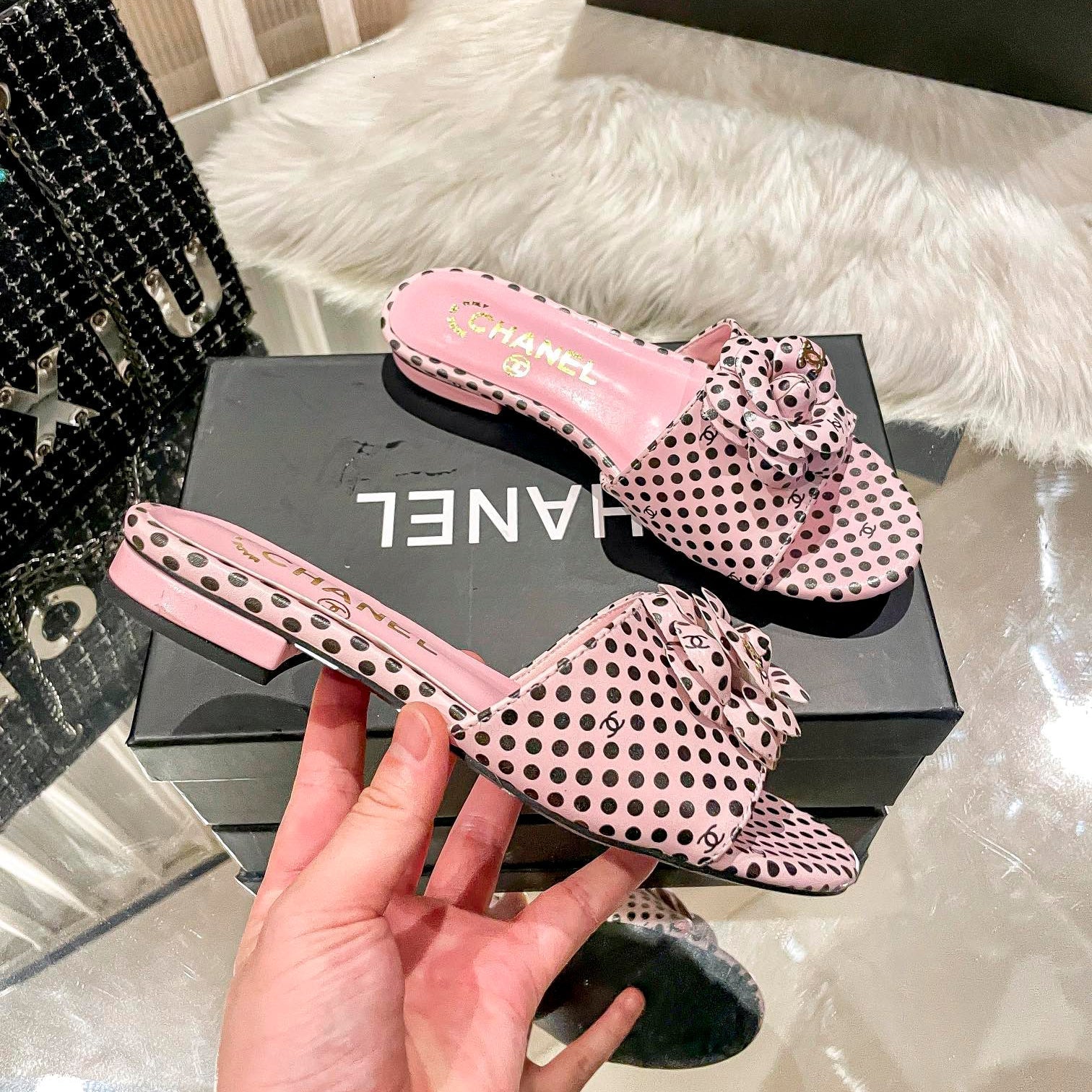 Retro Polka Dot Flat Slippers