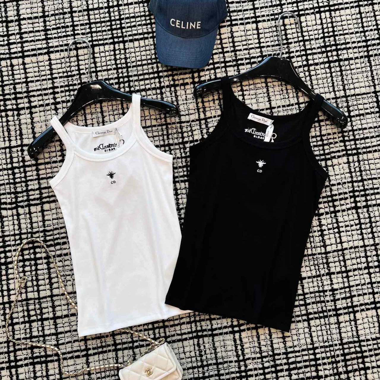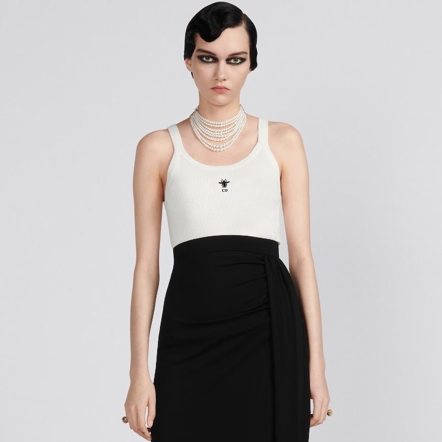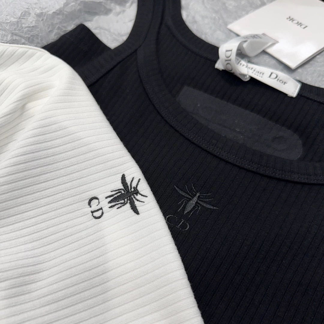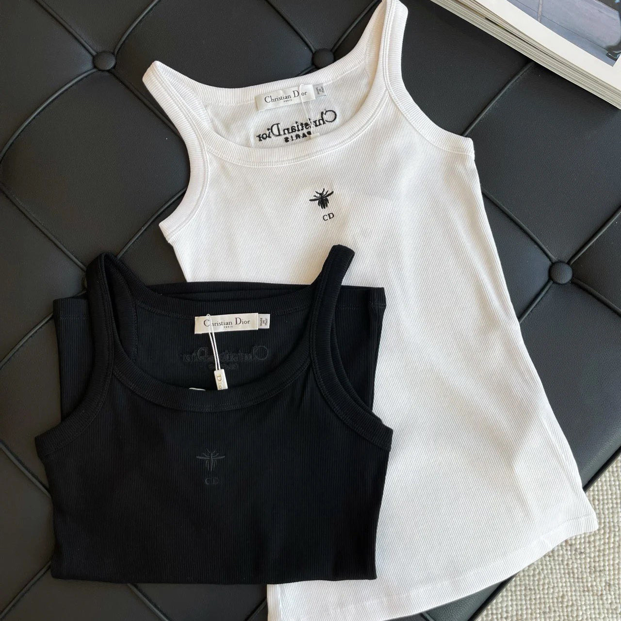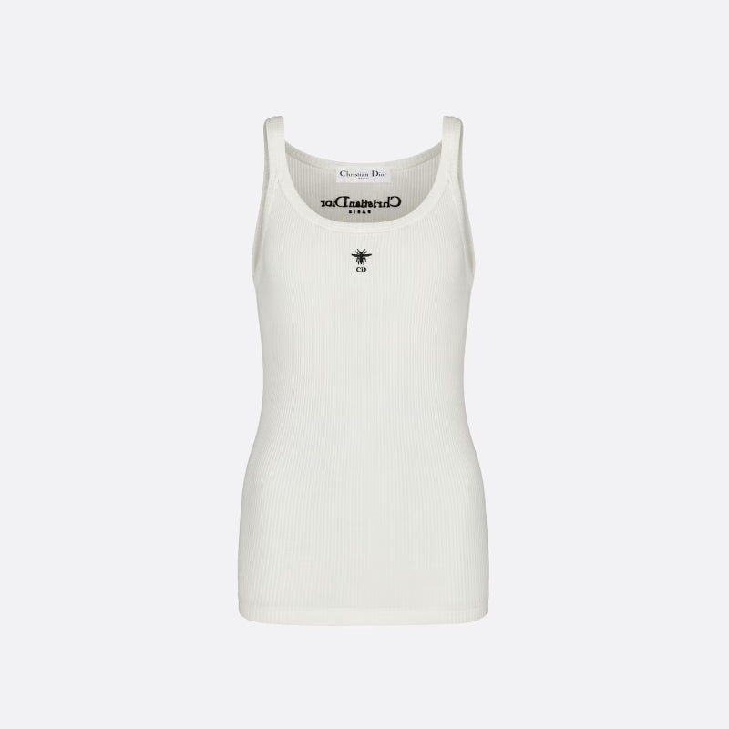 - Crafted from white ribbed cotton-jersey, this tank is a timeless piece. Cut for a slim fit, it features an embroidered Bee logo on the front, spaghetti straps and the brand's signature on the back. Matches with any outfit and is suitable for all seasons.
