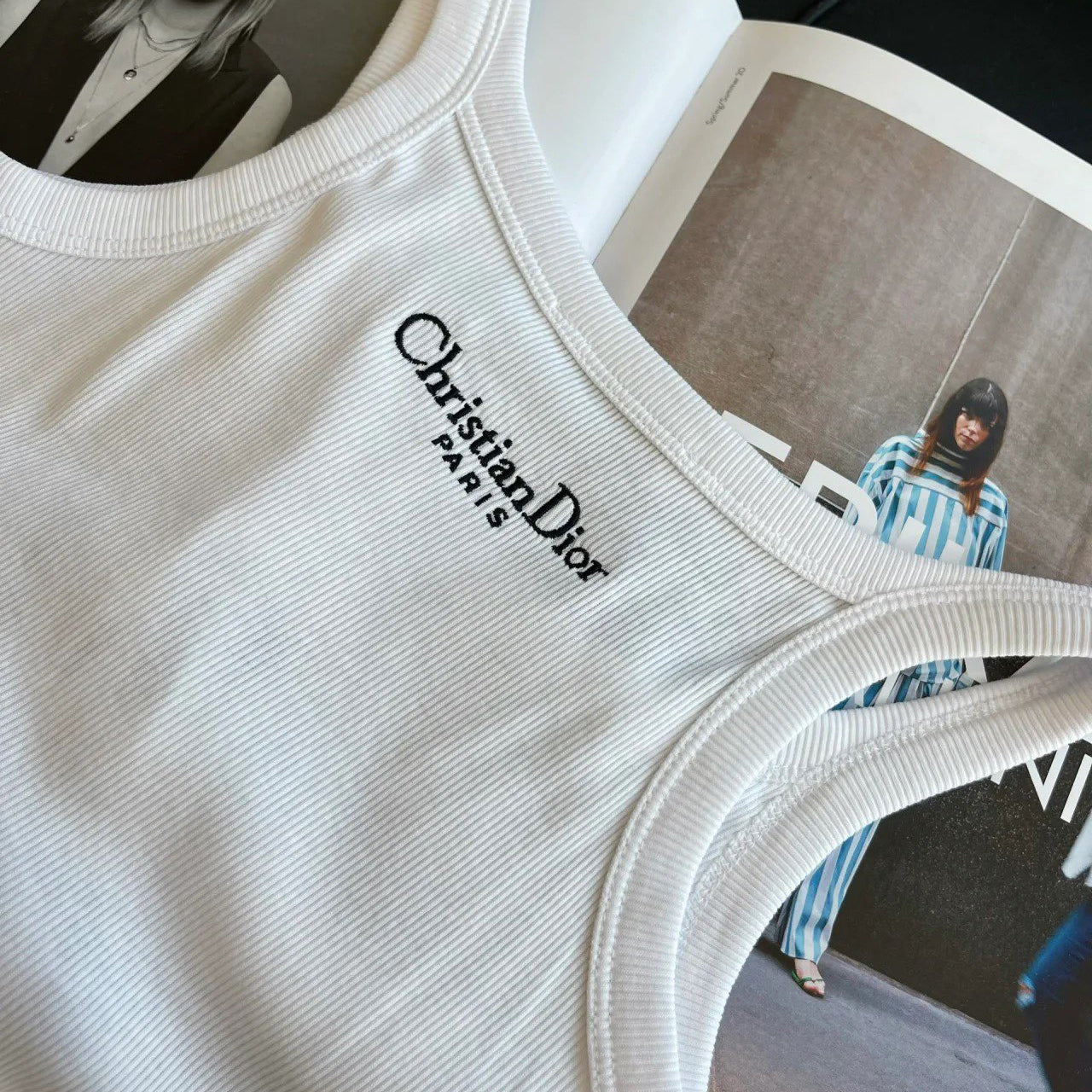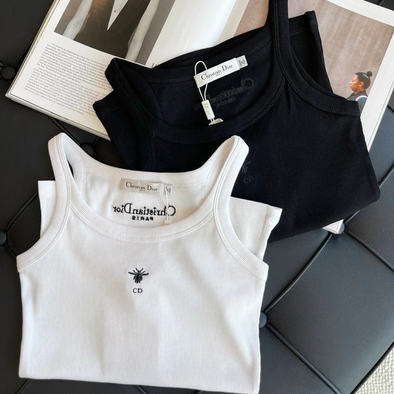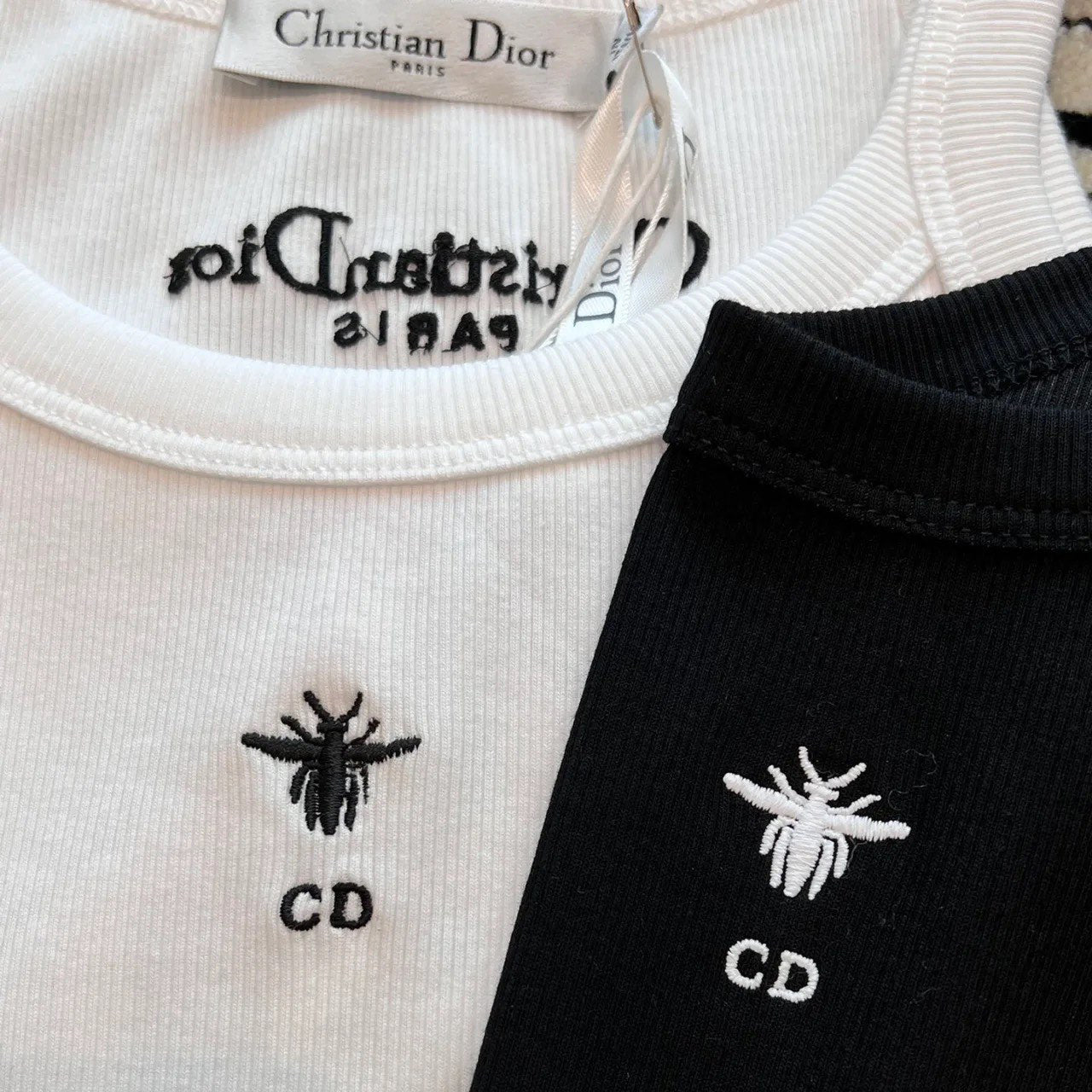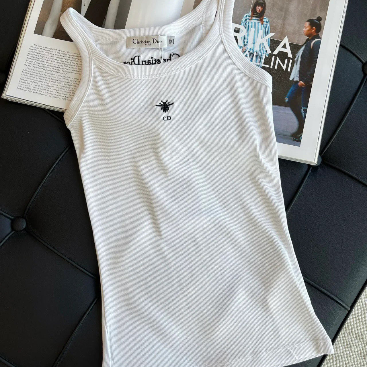 - Crafted from white ribbed cotton-jersey, this tank is a timeless piece. Cut for a slim fit, it features an embroidered Bee logo on the front, spaghetti straps and the brand's signature on the back. Matches with any outfit and is suitable for all seasons.